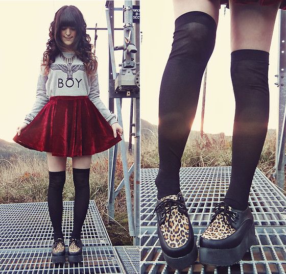 Animal Control Published on 11/02/2014 in Cosas que me pongo con zapatos animal printFull resolution (560 × 537) < Previous Next > http://lookbook.nu/look/4325535-Oasap-Leopard-Creepers-Chicnova-Red-Velvet-Skirt