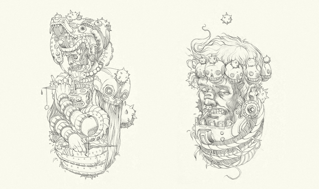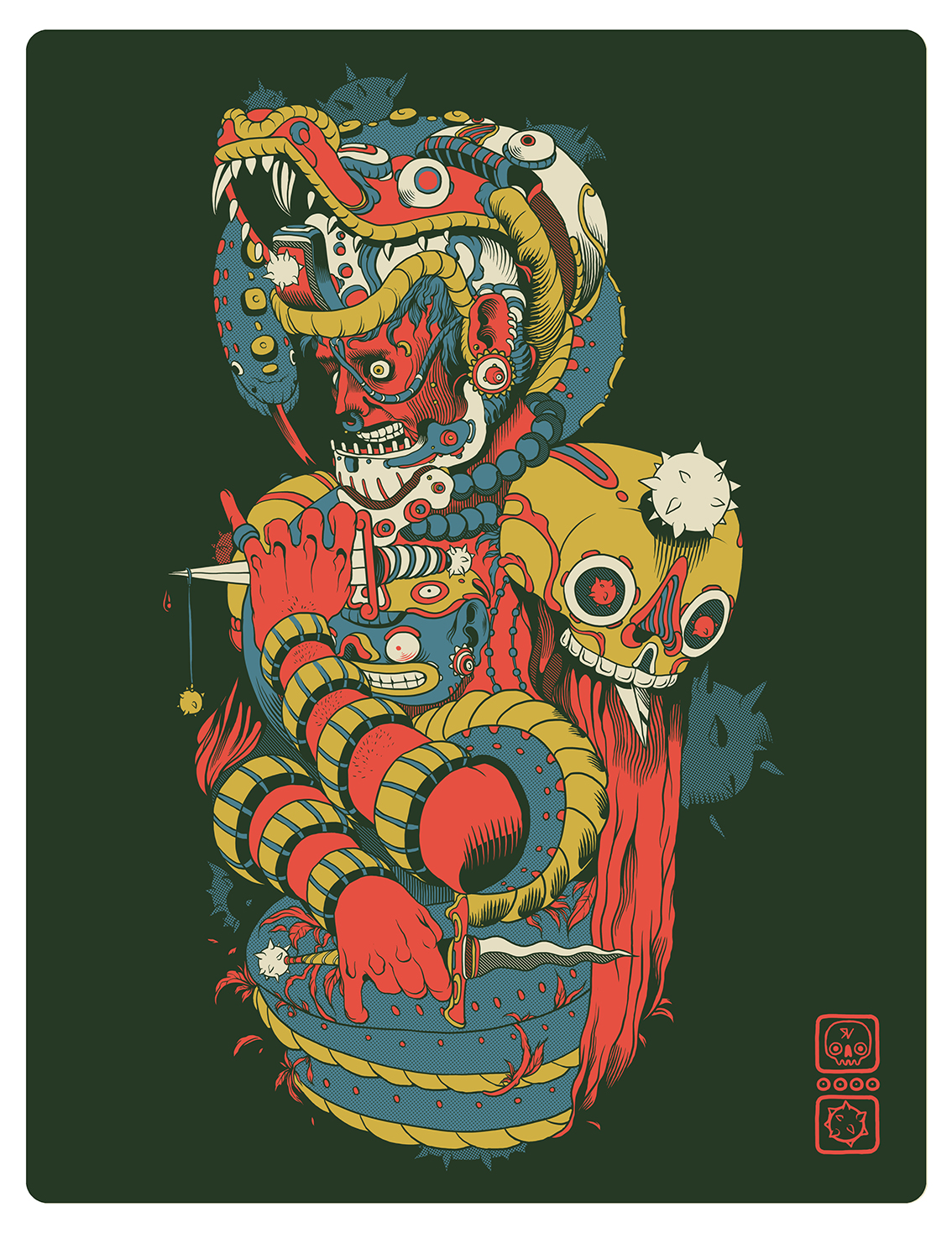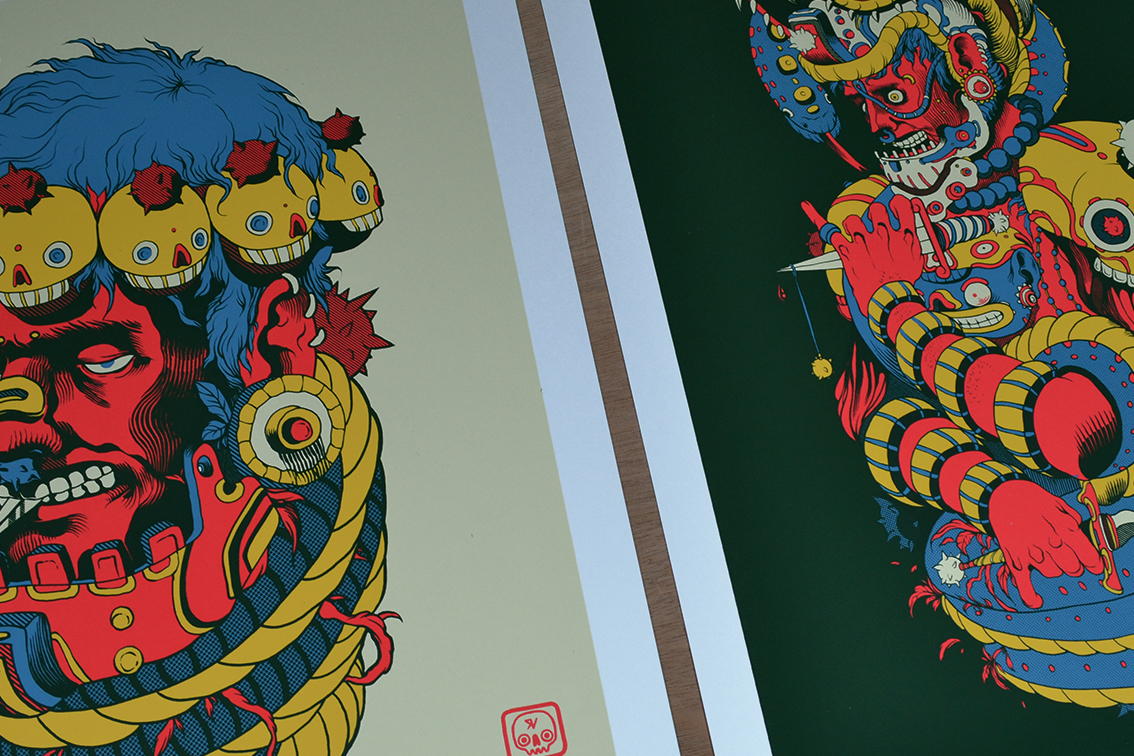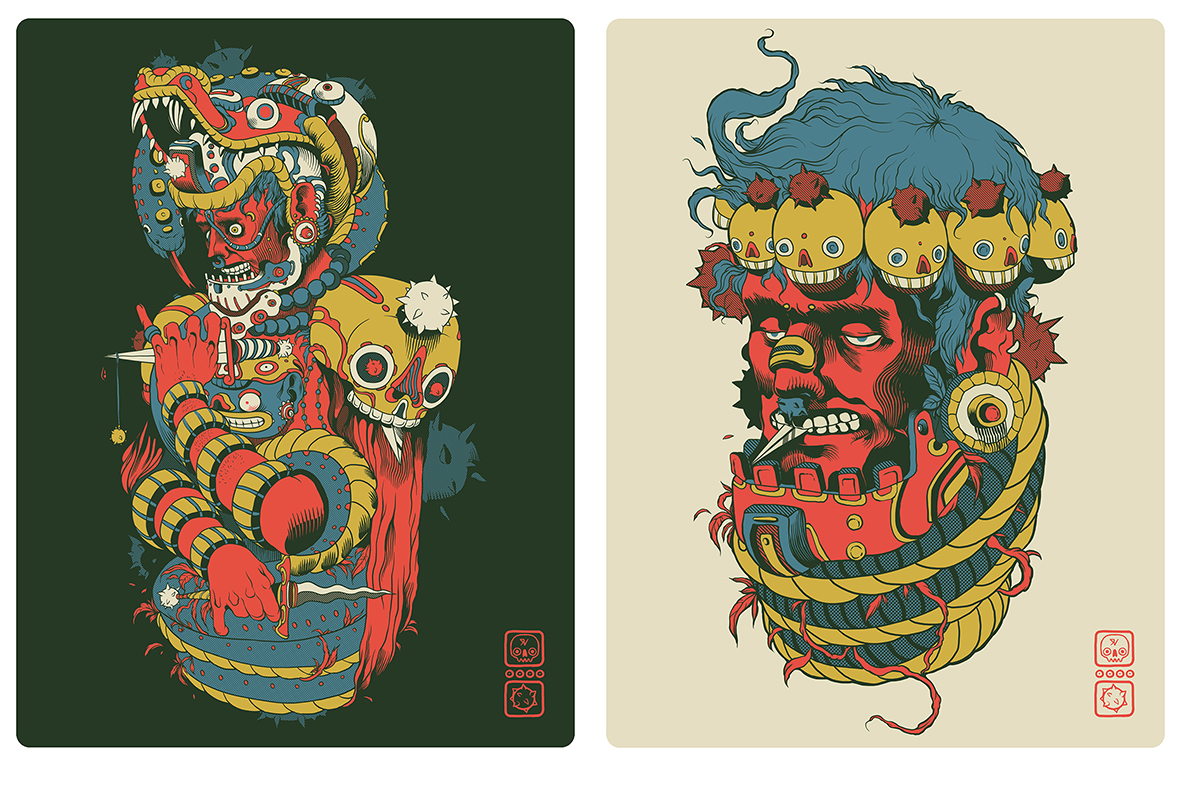 Raúl Urias es un ilustrador independiente mexicano que principalmente trabaja para grandes marca como Nike, Gatorade, Sprite, etc. En sus serigrafías de Toro & Cuerpo, Urias se inspira en las esculturas y arte de Grecia y México, creando un híbrido entre fascinante y terrorífico.