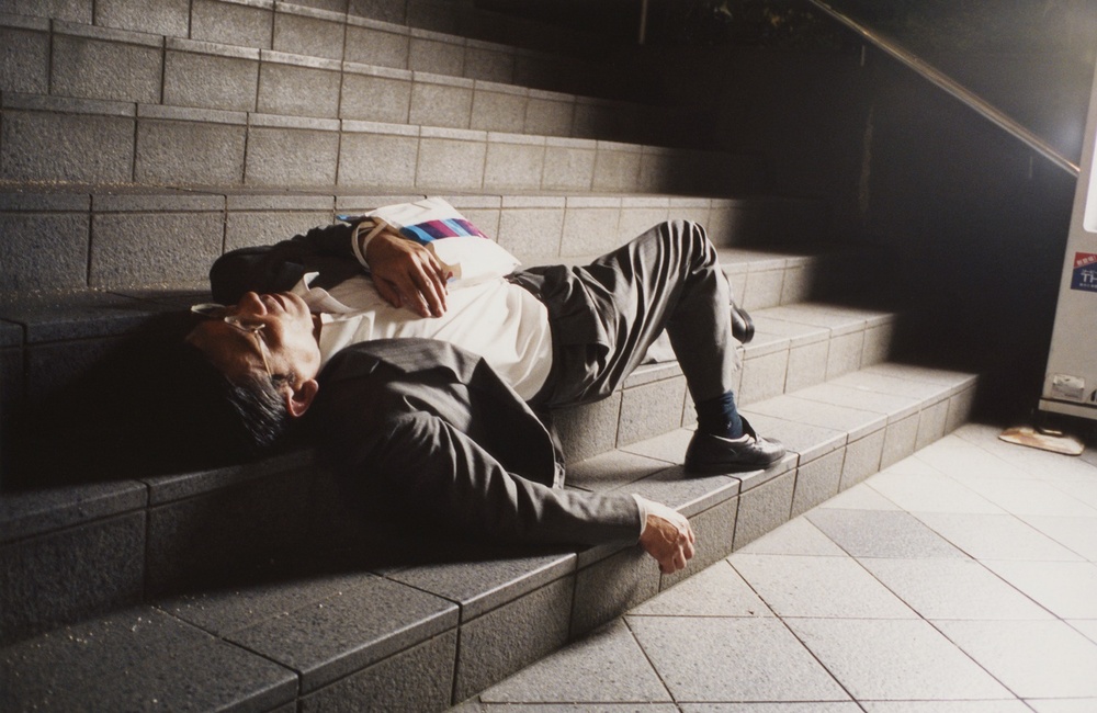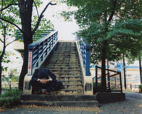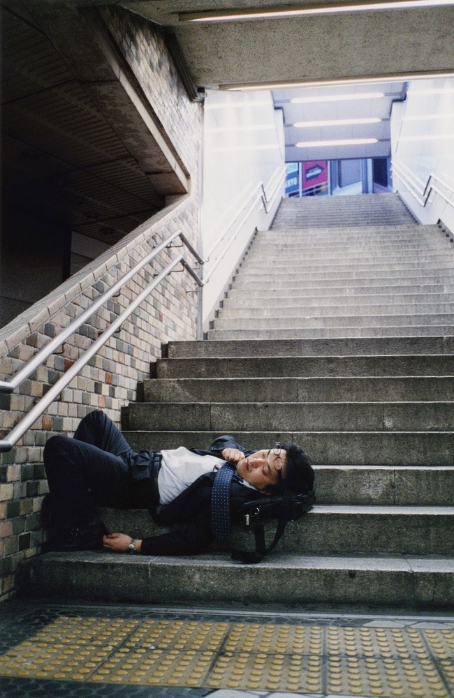 En Japón, algunos hombres y mujeres de negocios tienen una reputación de trabajar duro y beber duro, día tras día. Estas fotografías de Kenji Kawamoto registran los lugares donde, luego de la borrachera, ya no pueden seguir, por lo que sencillamente paran donde están y esperan.