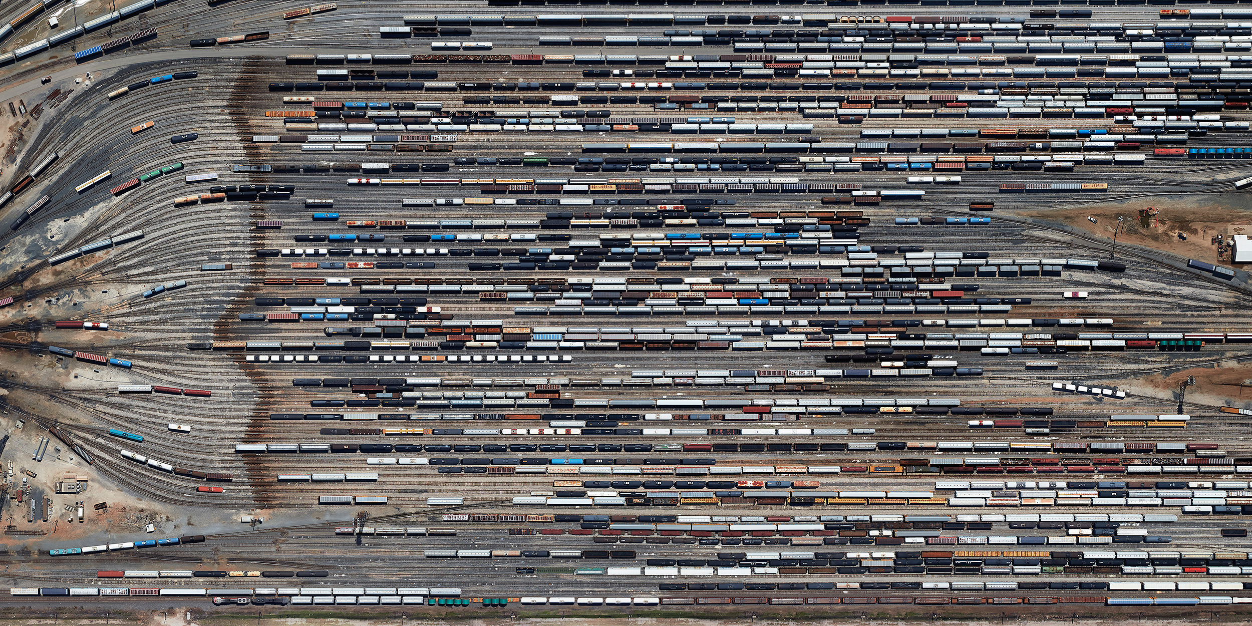 Este es el trabajo del fotógrafo británico Marcus Lyon. Imágenes de megaciudades atestadas y carreteras interminables donde crea visiones a gran escala de la globalización y de la actividad humana.