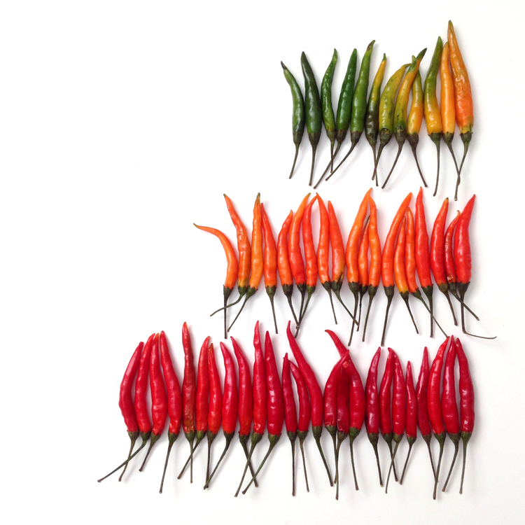 La fotógrafa estadounidense de alimentos Brittany Wright, ha creado #foodgradients, una celebración del color y las formas que encuentra en variados alimentos. Muchas de sus fotos muestran los cambios que sufre la preparación de una comida, o cuántas variedades existen en algo tan simple como un huevo.