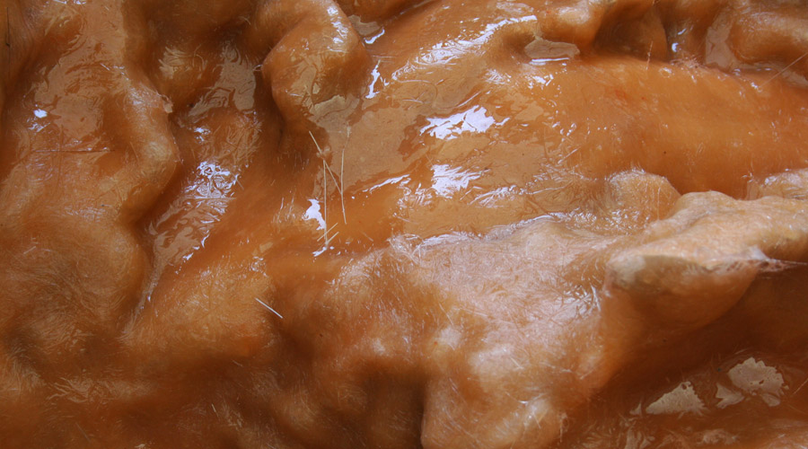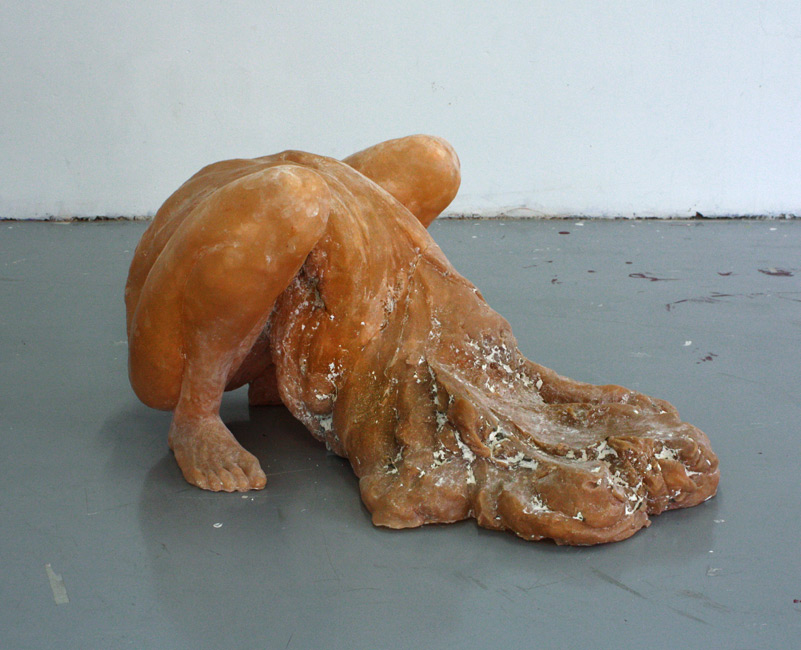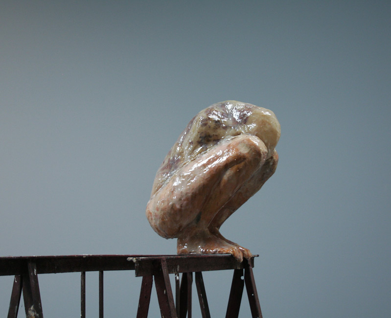 La vulnerabilidad de estas esculturas y cuerpos en transición se ve reflejada también en los materiales utilizados. Las superficies tienden a tener una aspecto transparente por la aplicación de varias capas de colores y el uso de materiales como la cera, la resina.
