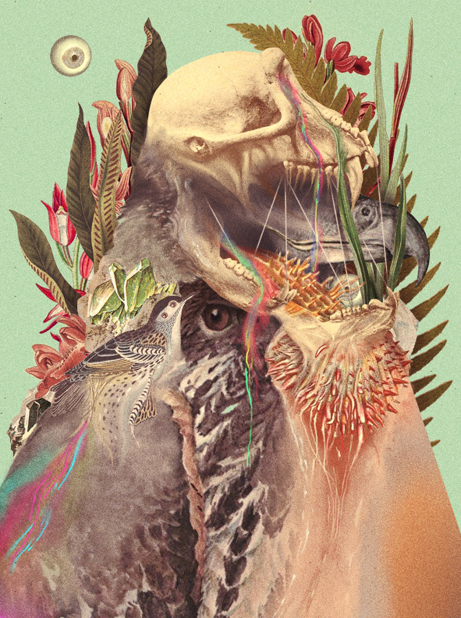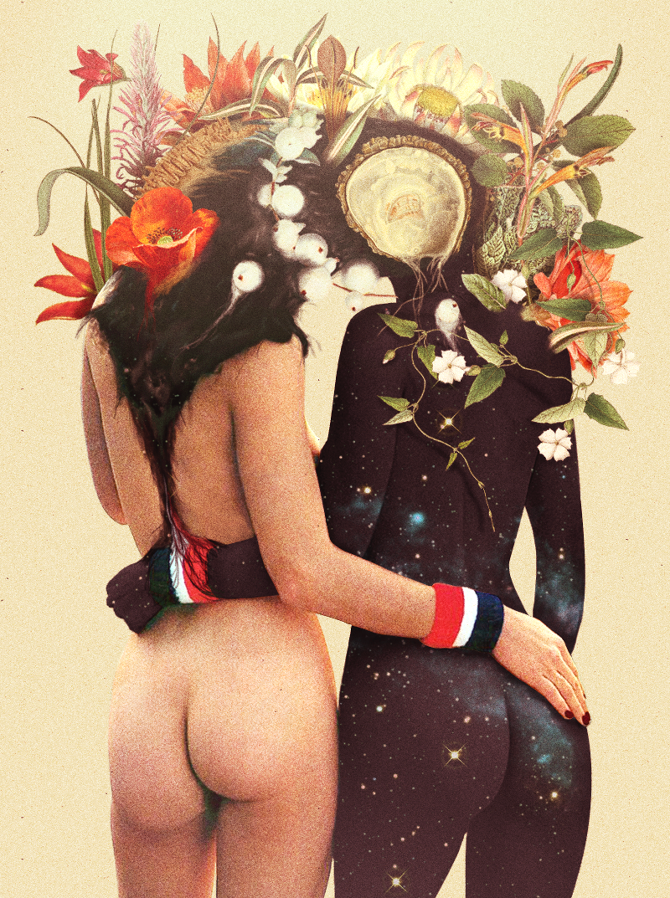 Caras que se transforman en flores, en figuras geométricas o simplemente, en formas líquidas que se derriten en la ilustración. Esta es la base del arte de Pierre Schmidt, a.k.a Drømsjel, un joven alemán que toma imágenes que parecen sacadas de una revista de los años 50’s, pero llevadas a un mundo extrañamente oscuro y surrealista.