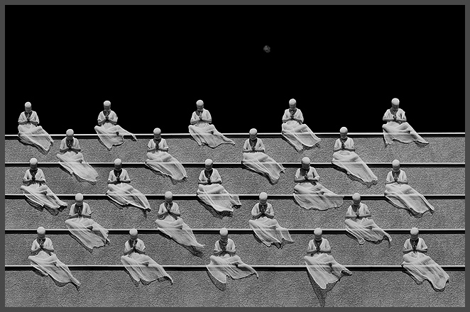 Las imágenes del fotógrafo ruso Misha Gordin (1946) se ven como reproducciones digitales, pero todas se «ensamblan y se imprimen en un cuarto oscuro tradicional».